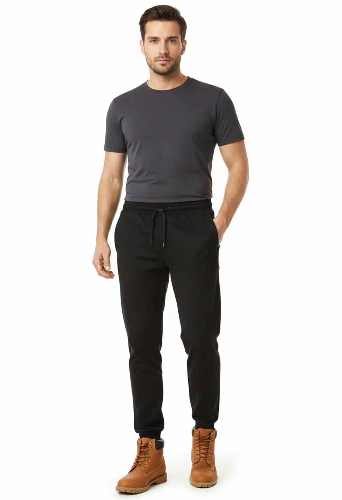 Un model de pantaloni pentru bărbați cu buzunare laterale si talie elastică care nu strânge talia, este fixat în siguranță si nu restricționează mișcarea. Se potrivesc cu ușurință într-un stil casual și sportiv. Pantalonii de acest tip pot fi combinați cu diferite tricouri și hanorace din colecția Bumbăcel.