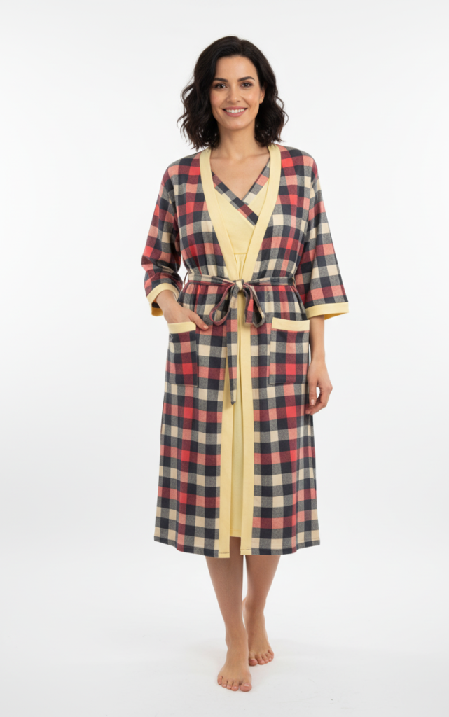 Fiecare produs este creat cu suflet și dragoste, din acest motiv îți propunem acest set cămașă de noapte delicată și capot cu mânecă lungă din bumbac plăcut la atingere. Cu ea fii sigură că vei avea un somn dulce și relaxant. Grăbește-te sa alegi mărimea și culoarea pe potriva ta!